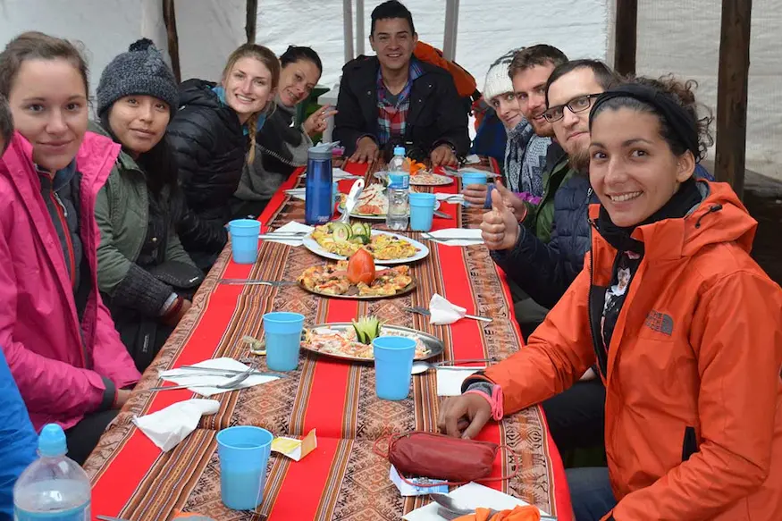 Almuerzo en Cusipata: menú variado con platos locales después de la caminata.